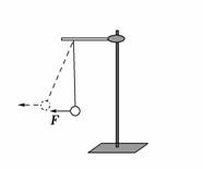 一铁架台放于水平地面上,其上有一轻质细线悬挂一小球,开始时细线竖直,现将水平力F作用于小球上,使其缓慢地由实线位置运动到虚线位置,铁架台始终保持静止,则在这一过程中