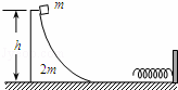 如图所示,轻弹簧的一端固定在竖直墙上,质量为2m的光滑弧形槽静止放在光滑水平面上,弧形槽底端与水平面相切,一个质量为m的小物块从槽高h处开始自由下滑,下列说法错误的是( )