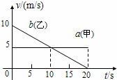 甲、乙两辆汽车在平直的公路上沿同一方向做直线运动,t=0时刻同时经过公路旁的同一个路标.在描述两车运动的v﹣t图中,直线a、b分别描述了甲、乙两车在0﹣20s的运动情况.关于两车之间的位置关系,下列说法正确的是( )