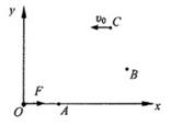 如图所示,在光滑水平面内建立直角坐标系xOy,一质点在该平面内0点受大小为F的力作用从静止开始作匀加速直线运动,经过t时间质点运动到A点,A、0两点距离为α ,在A 点作用力突然变为沿y轴正方向,大小仍为F,再经t时间质点运动到B点,在β点作用力 又变为大小等于4F、方向始终与速度方向垂直且在该平面内的变力,再经一段时间后质点 运动到C点,此时速度方向沿x轴负方向,下列对运动过程的分析正确的是