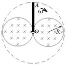 有一种信号发生器的工作原理可简化为如图所示的情形,竖直面内有半径均为R且相切于O点的两圆形区域,其内存在水平恒定的匀强磁场,长为2R的导体杆OA,以角速度
