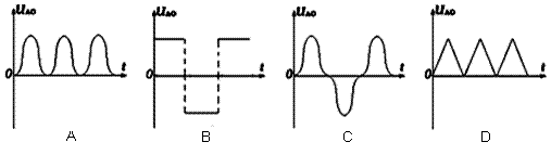 绕过O点的固定轴,在竖直平面内顺时针匀速旋转,t=0时,OA恰好位于两圆的公切线上,下列描述导体杆两端电势差UAO随时间变化的图像可能正确的是