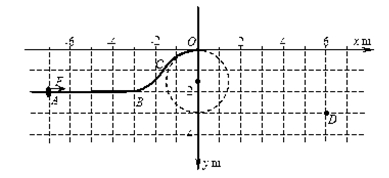 ÔÚÊúÖ±Æ½ÃæÄڹ̶¨Ò»¹ìµÀABCO£¬ AB¶Îˮƽ·ÅÖ㬳¤Îª4 m£¬BCO¶ÎÍäÇúÇҹ⻬£¬¹ìµÀÔÚOµãµÄÇúÂʰ뾶Ϊ1.5 m£»Ò»ÖÊÁ¿Îª1.0 kg¡¢¿ÉÊÓ×÷ÖʵãµÄÔ²»·Ì×ÔÚ¹ìµÀÉÏ£¬Ô²»·Óë¹ìµÀAB¶Î¼äµÄ¶¯Ä¦²ÁÒòÊýΪ0.5¡£½¨Á¢ÈçͼËùʾµÄÖ±½Ç×ø±êϵ£¬Ô²»·ÔÚÑØxÖáÕý·½ÏòµÄºãÁ¦F×÷ÓÃÏ£¬´ÓA£¨-7,2£©µãÓɾ²Ö¹¿ªÊ¼Ô˶¯£¬µ½´ïÔµãOʱ³·È¥ºãÁ¦F£¬Ë®Æ½·É³öºó¾¹ýD£¨6£¬3£©µã¡£ÖØÁ¦¼ÓËÙ¶ÈgÈ¡10m/s2£¬²»¼Æ¿ÕÆø×èÁ¦¡£Çó£º