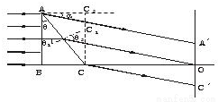 的光带,试作出光路图并求棱镜的折射率。(其中AC的右方存在有折射率为在的透明介质)