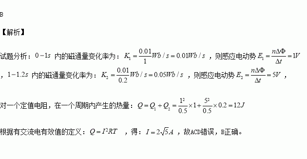 的闭合线圈处于某一磁场中,磁场方向垂直于线圈平面,从某时刻起穿过线圈的磁通量按图示规律变化,则线圈中产生交变电流的有效值为( )
