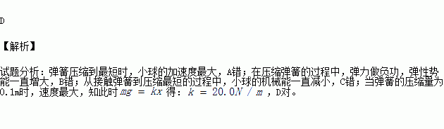 B.从接触弹簧到压缩至最短的过程中,弹簧的弹性势能先增大后减小