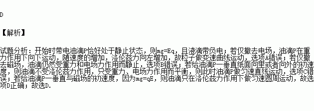 A.若仅撤去电场,油滴P可能做匀加速直线运动