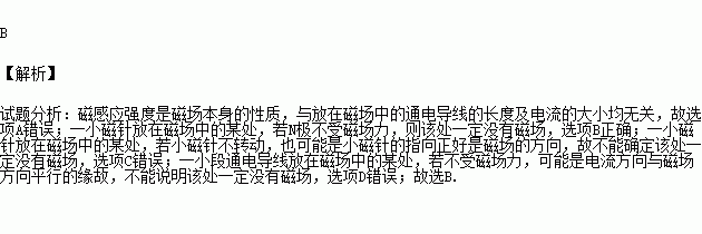 D.一小段通电导线放在磁场中的某处,若不受磁场力,则该处一定没有磁场