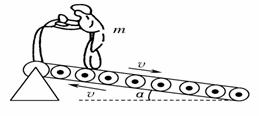如图所示是健身用的“跑步机”示意图,质量为m的运动员踩在与水平面成α角静止的皮带上,运动员用力向后蹬皮带,皮带运动过程中受到的阻力恒为Ff,使皮带以速度v匀速向右运动,则在运动过程中,下列说法正确的是( )