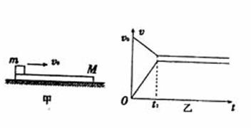 如图甲所示,一质量为M的木板静止在光滑水平地面上,现有一质量为m的小滑块以一定的速度v0从木板的左端开始向木板的右端滑行,滑块和木板的水平速度大小随时间变化的情况如图乙所示,根据图像作出如下判断