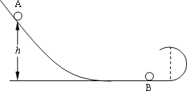 如图所示,一水平轨道左端与一倾斜轨道平滑连接,右端与一半径为R的竖直面内的圆轨道连接,小球B静止在水平轨道上,小球A从倾斜轨道上某高度处由静止开始下滑,与B发生无能量损失的弹性正碰,不计一切摩擦,已知A、B的质量分别为mA=m,mB=3m,若碰后小球B恰好能通过圆轨道的最高点,求释放小球A 的初始位置距离水平轨道的高度h.