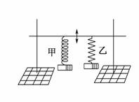 如图两个弹簧振子悬挂在同一支架上,已知甲弹簧振子的固有频率为8 Hz,乙弹簧振子的固有频率为72 Hz,当支架在受到竖直方向且频率为9 Hz的驱动力作用做受迫振动时,则两个弹簧振子的振动情况是( )