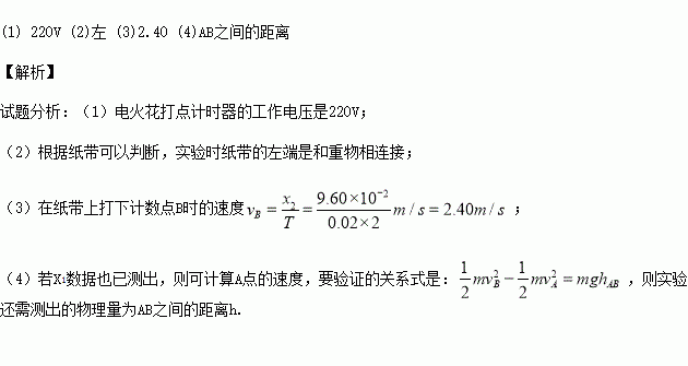 某同学安装如图甲的实验装置,验证机械能守恒定律.如图乙是该实验得到的一条点迹清晰的纸带,现要取A、B两点来验证实验,已知电火花打点计时器每隔0.02S打一个点.