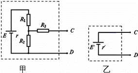 (1)图甲中虚线框内的电路可等效为一个电源,即图甲可等效为图乙,其等效电动势E′等于CD间未接入用电器时CD间的电压;若用导线直接将CD两点连接起来,通过该导线的电流等于等效电源的短路电流,则等效电源的内电阻r′是多少?