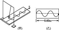图(甲)是利用沙摆演示简谐运动图像的装置.当盛沙漏斗下面的薄木板被水平匀速拉出时,做简谐运动的漏斗漏出的沙在板上形成的曲线显示出沙摆的振动位移随时间的变化关系.已知木板被水平拉动的速度为0.20 m/s,图(乙)所示的一段木板的长度为0.60 m,则这次实验沙摆的摆长为(g取π2)( )
