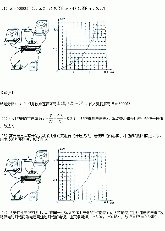 某同学通过实验描绘一个标有“3V,0.6W”小灯泡的伏安特性曲线,现有电源(电动势6V,内阻不计)、电流表