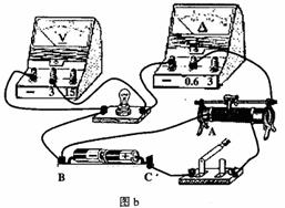 (2)在图b中把缺少的导线补全连接成实验的电路(其中电流表和电压表分别测量小灯泡的电流和电压)。