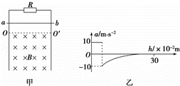 如图甲所示,两条足够长的光滑平行金属导轨竖直放置,导轨间距为L=1m,两导轨的上端接有电阻,阻值R=2Ω.虚线OO′下方是垂直于导轨平面向里的匀强磁场,磁场磁感应强度为2T.现将质量m=0.1kg、电阻不计的金属杆ab,从OO′上方某处由静止释放,金属杆在下落的过程中与导轨保持良好接触,且始终保持水平,不计导轨的电阻.已知金属杆下落0.3m的过程中加速度a与下落距离h的关系图象如图乙所示.(g取10m/s2)求: