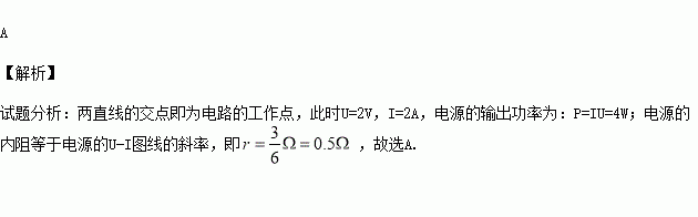 如图所示,直线a为某电源的路端电压随干路电流强度的变化图线,直线b为某一电阻R两端的电压随电流变化图线,把该电源和该电阻组成的闭合电路,电源的输出功率和电源的内电阻分别为:( )