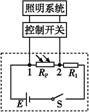 (2)如图(乙)所示,当1、2两端所加电压上升至2 V时,控制开关自动启动照明系统.请利用下列器材设计一个简单电路,给1、2两端提供电压,要求当天色渐暗照度降低至1.0(lx)时启动照明系统,在虚线框内完成电路原理图.(不考虑控制开关对所设计电路的影响)
