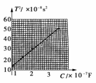 在LC振荡电路中,如已知电容C,并测得电路的固有振荡周期为T,即可求得电感L。为了提高测量精度,需多次改变C值并测得相应的T值,现将测得的六组数据标示在以C为横坐标、T2为纵坐标的坐标纸上,即如图中用“×”表示的点。