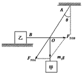 如图所示,质量为m1的物体甲通过三段轻绳悬挂,三段轻绳的结点为O.轻绳OB水平且B端与放置在水平面上的质量为m2的物体乙相连,轻绳OA与竖直方向的夹角θ=37°,物体甲、乙均处于静止状态.(已知:sin37°=0.6,cos37°=0.8)求: