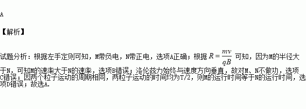 质量和电量都相等的带电粒子M和N,以不同的速率经小孔S垂直进入匀强磁场,运行的半圆轨迹如图两种虚线所示,下列表述正确的是( )[