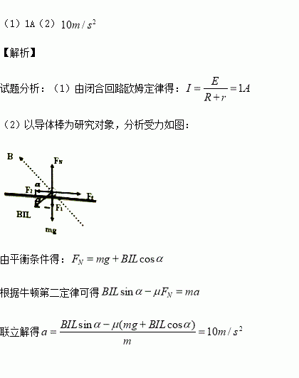 ,金属棒ab的质量为0.02kg,放在导轨上且与导轨垂直,且与导轨的动摩擦因数为0.4.电源电动势为1.5V,内阻为0.5Ω,定值电阻R为1Ω,其余部分的电阻不计,则当电键闭合的瞬间,求:(