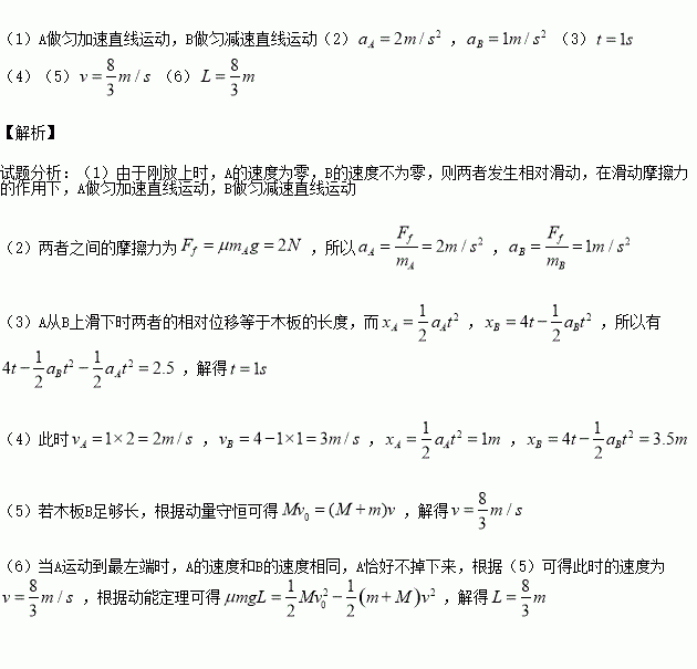(6)当木板B为多长时,A恰好没从B上滑下(木板B至少为多长,A才不会从B上滑下)