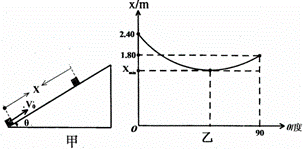 如图甲所示,为测定物体冲上粗糙斜面能达到的最大位移x与斜面倾角θ的关系,将某一物体每次以不变的初速率v0沿足够长的斜面向上推出,调节斜面与水平方向的夹角θ,实验测得x与斜面倾角θ的关系如图乙所示,g取10m/s2,根据图象可求出( )