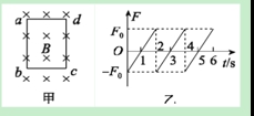 如图甲所示,将长方形导线框abcd垂直磁场方向放入匀强磁场B中,规定垂直ab边向右为ab边所受安培力F的正方向,F随时间的变化关系如图乙所示.选取垂直纸面向里为磁感应强度B的正方向,不考虑线圈的形变,则B随时间t的变化关系可能是下列选项中的( )