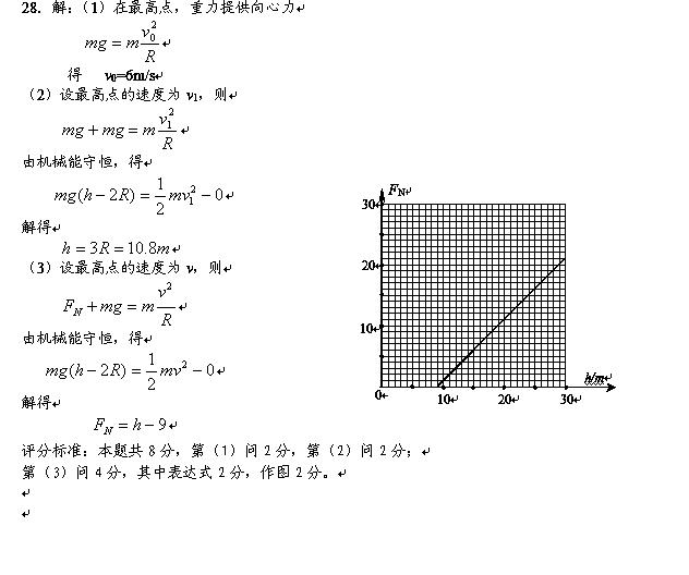 (3)改变h,小球在圆周轨道的最高点所受压力FN大小也发生改变。画出小球在圆周轨道的最高点所受压力FN与小球开始下滑时的高度h之间的关系图。