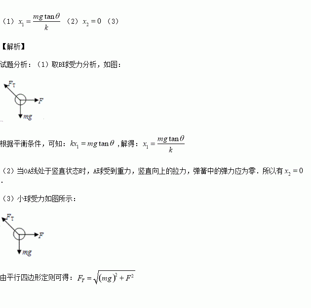 (2)现对B施加一水平向右大小为F的恒力,使得OA线竖直绷紧,如图乙,求AB两球均静止时弹簧的形变量。