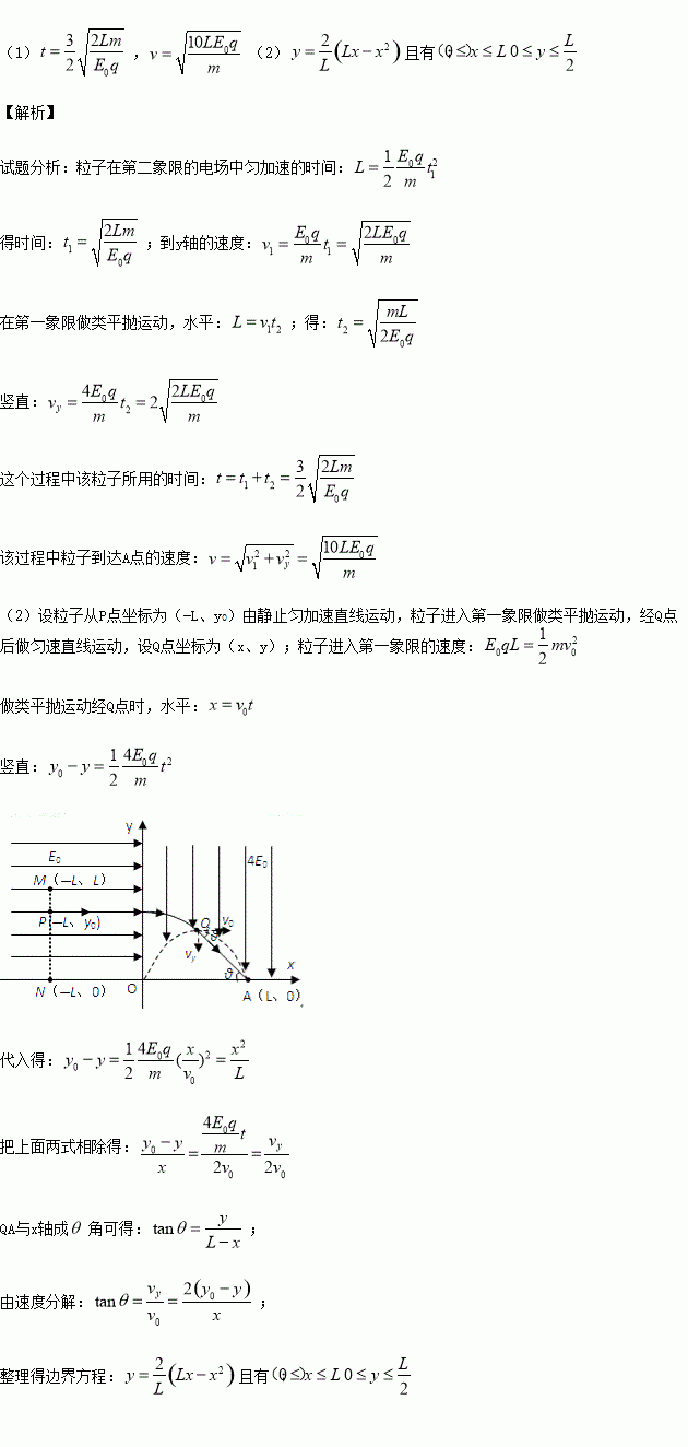 (2)若从MN线上M点下方由静止发出的所有粒子,在第二象限的电场加速后,经第一象限的电场偏转穿过虚线边界后都能到达A点,求此边界(图中虚线)方程