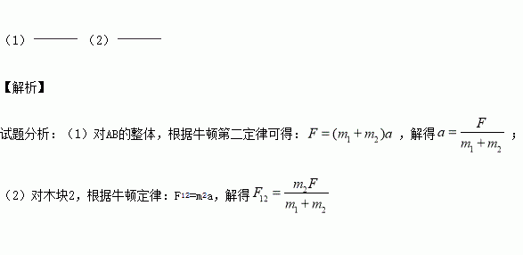 质量分别为m1和m2的木块,并列放置于光滑水平地面,如图所示,当木块1受到水平力F的作用时,两木块同时向右做匀加速运动,求: