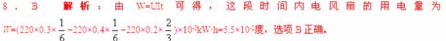一台电风扇的额定电压为交流220V。在其正常工作过程中,用交流电流表测得某一段时间内的工作电流I随时间t的变化如图所示。这段时间内电风扇的用电量为