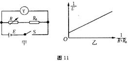 (2)某同学用作图法处理数据,他调节电阻箱的阻值R,得出了若干组数据,并描点连线得出了如图11乙所示的图线,图线纵坐标表示电压表读数的倒数