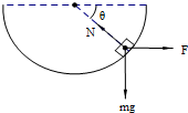 如图所示,一质量为m的滑块在水平推力F的作用下静止在内壁光滑的半球形凹槽内,已知重力加速度大小为g,试求:水平推力的大小及凹槽对滑块的支持力的大小.