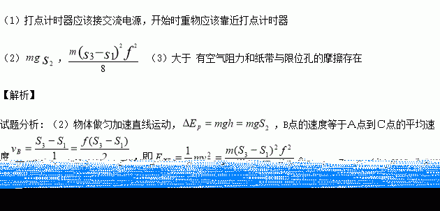 (3)重力势能的减少量 动能的增加量(填“大于”、“等于”、“小于”)的原因是_______________________________.