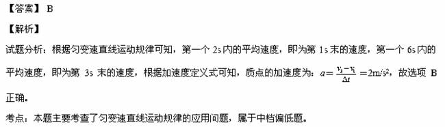 做匀加速直线运动的质点在第一个2s内的平均速度比在第一个6s内的平均速度小4m/s,则质点的加速度大小为( )