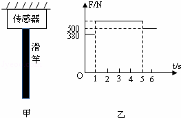如图甲所示为学校操场上一质量不计的竖直滑竿,滑竿上端固定,下端悬空.为了研究学生沿竿的下滑情况,在竿顶部装有一拉力传感器,可显示竿顶端所受拉力的大小.现有一质量为50kg的学生(可视为质点)从上端由静止开始滑下,5s末滑到竿底时速度恰好为零.以学生开始下滑时刻为计时起点,传感器显示的拉力随时间变化情况如图乙所示,g取10m/s2.