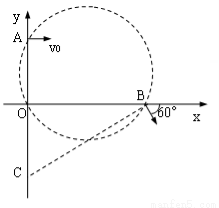 如图所示,y轴上A点距坐标原点的距离为L,坐标平面内有边界过A点和坐标原点O的圆形匀强磁场区域,磁场方向垂直坐标平面向里。有一电子(质量为m、电荷量为e)从A点以初速度v0沿着x轴正方向射入磁场区域,并从x轴上的B点射出磁场区域,此时速度方向与x轴正方向之间的夹角为60°。求: