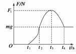 利用传感器和计算机可以研究力的大小变化的情况,实验时让某消防队员从平台上跳下,自由下落,在t1时刻双脚触地,他顺势弯曲双腿,重心又下降了h.计算机显示消防队员双脚触地后重心下降h过程,他受到地面支持力F随时间变化的图象如图所示.根据图象提供的信息,判断正确的是( )