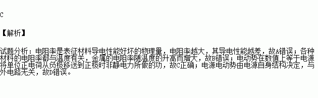 C.电动势在数值上等于电源将单位正电荷从负极移送到正极时,非静电力所做的功