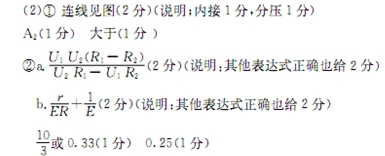 a.小聪的实验操作是:闭合开关S.调整电阻箱的阻值为R1时,读出电压表的示数为Ul;调整电阻箱的阻值为R2时,读出电压表的示数为U2。根据小聪测出的数据可求得该电池的电动势,其表达式为E= ;