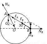 一光滑圆环固定在竖直平面内,环上穿有两个小球A和B(中央有孔),A、B之间由细绳连接着,它们位于图中所示位置时恰好都能保持静止状态。此情况下,B球与环心O处于同一水平面上,A、B间的细绳呈伸直状态,与水平线成30°夹角,已知B球的质量为1kg,g取10m/s2,求: