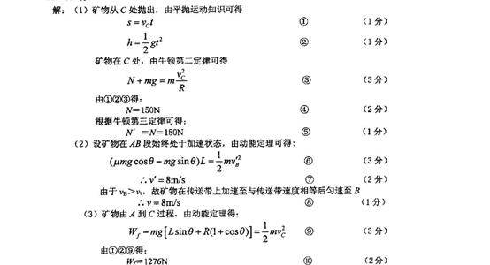 (3)矿物由A点到达C点的过程中,摩擦力对矿物所做的功。