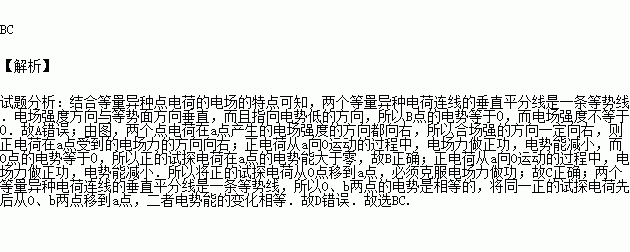 D.将同一正的试探电荷先后从O、b点移到a点,后者电势能的变化较大
