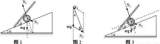 如图所示,质量为m的光滑小球放在倾角为α的斜面上,用挡板挡住,挡板与斜面的倾角为β,求斜面及挡板对小球的弹力.重力加速度为g.