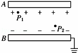 (3)若B板接地,P1和P2两点的电势各是多少伏?